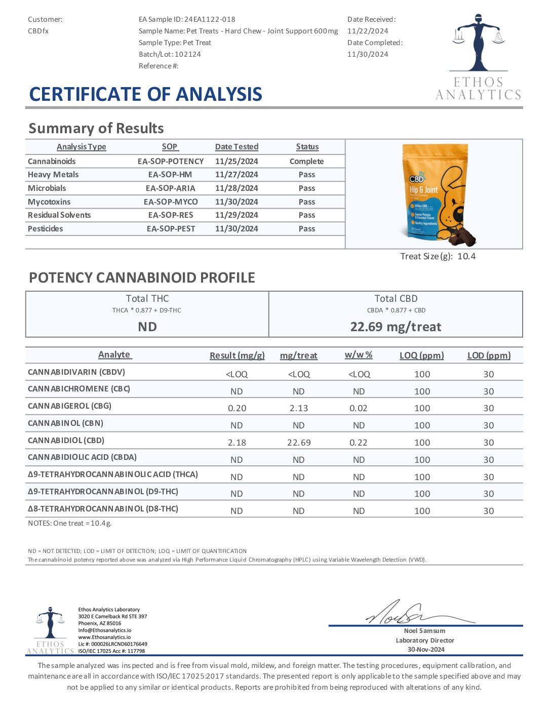 CBDFx Lab Results